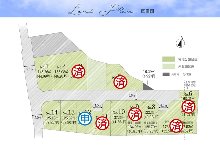 以下の号地は、現在申込が入っております。詳細についてはお問い合わせ願います。