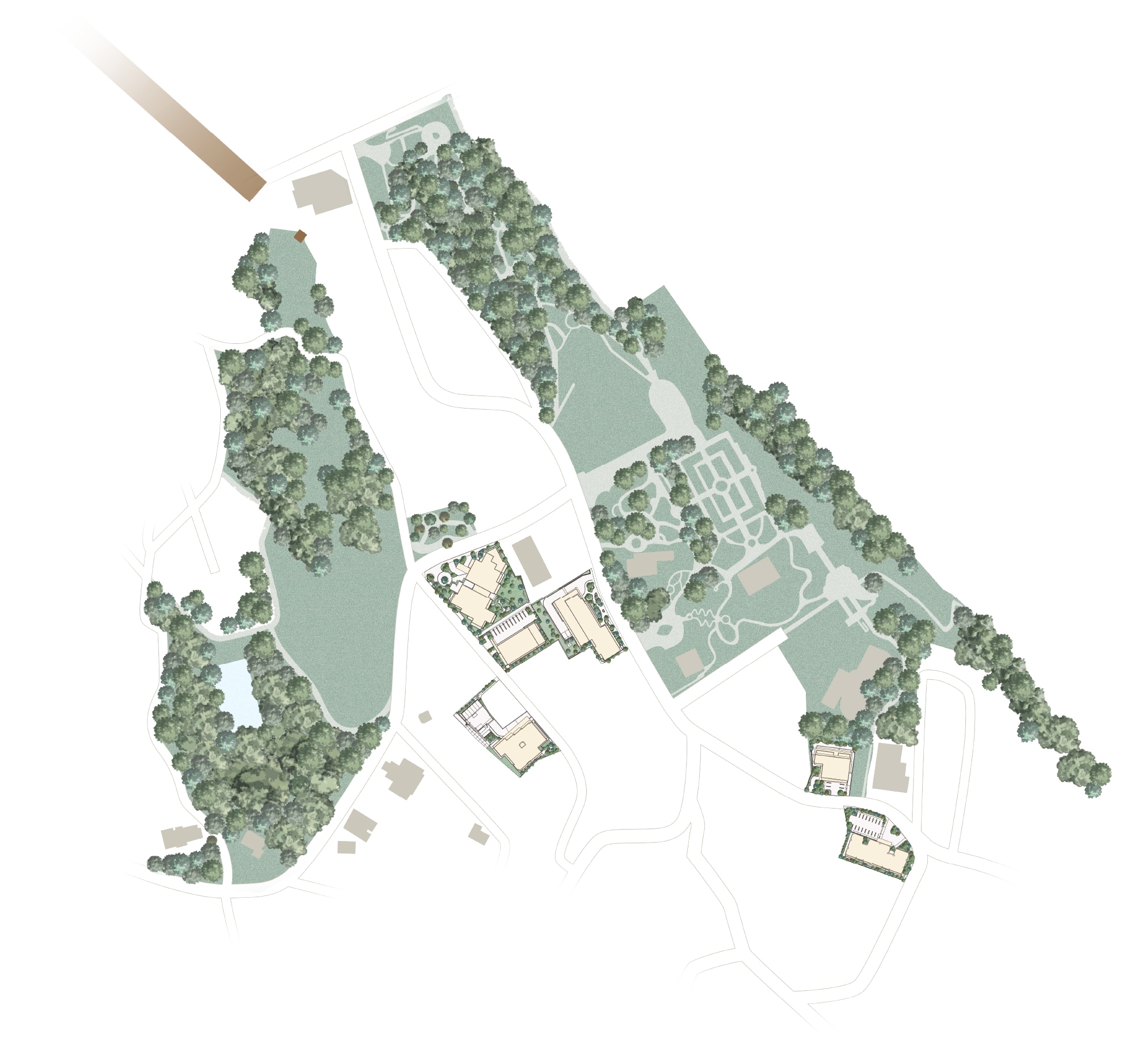 木々の立ち並ぶ美しき公園に、小さな実が装飾のように輝く