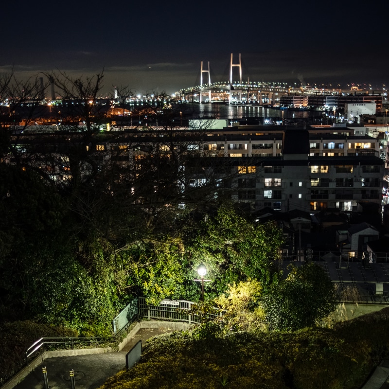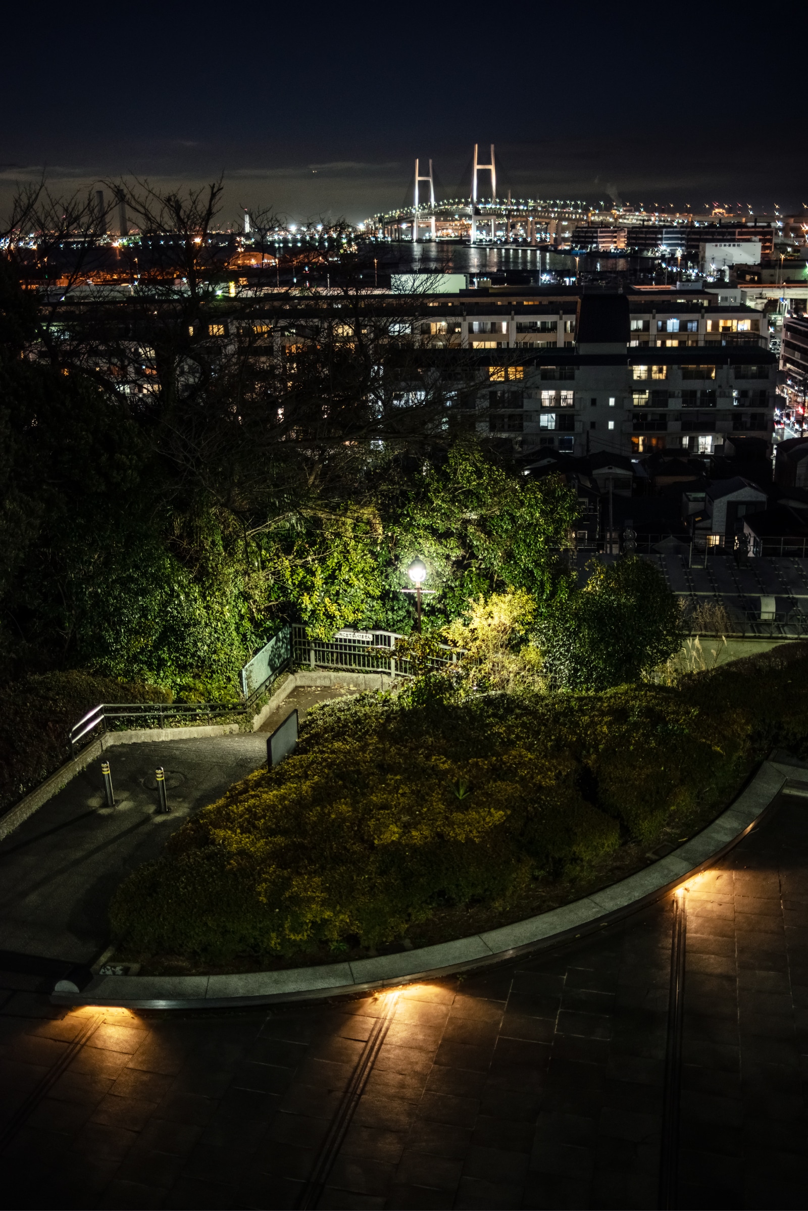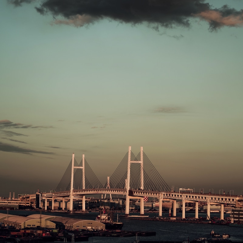 遠くに浮かぶベイブリッジが幻想的な光景を演出している