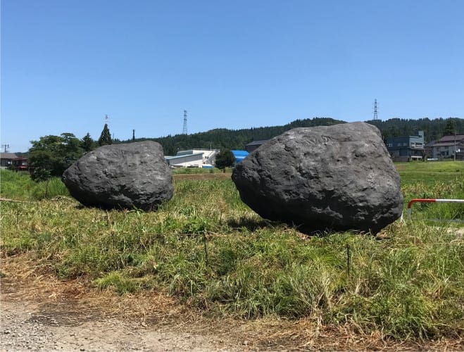目の前に現れたふたつの石。あまりにも日常ではありふれているため、通り過ぎようとした時に違和感が胸をつく。目の前にまったく同じ石がふたつ、存在している。長い年月を経て、山や海、川から転がってきた自然の産物である一方で、道を歩けばどこにでも転がっている石。現代アートチーム、目[mé]が作り出した“石”にはどんな謎が潜んでいるのだろうか。