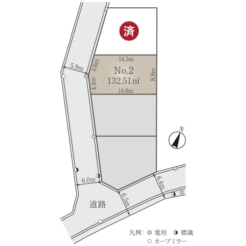 前面道路の幅員は5.9m以上。向かい合う建物と距離を保つことができるため、プライバシーに配慮した住まいづくりが可能です。