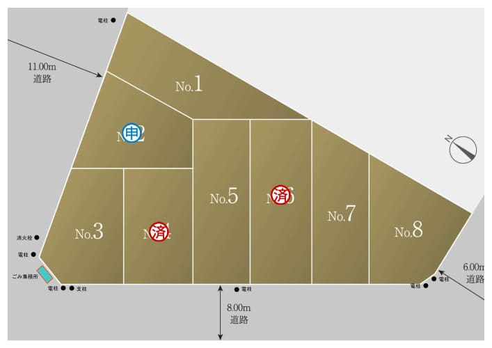 以下の号地は、現在申込が入っております。詳細についてはお問い合わせ願います。