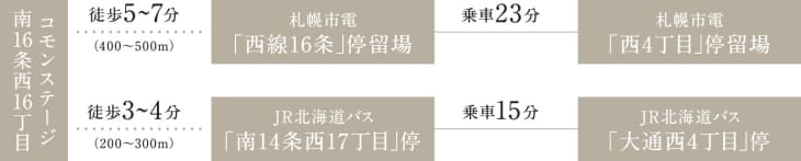 札幌市電「西線16条」停留所まで徒歩5分~7分(徒歩400~500m)で通勤や通学にもご利用いただけます。