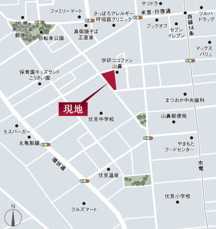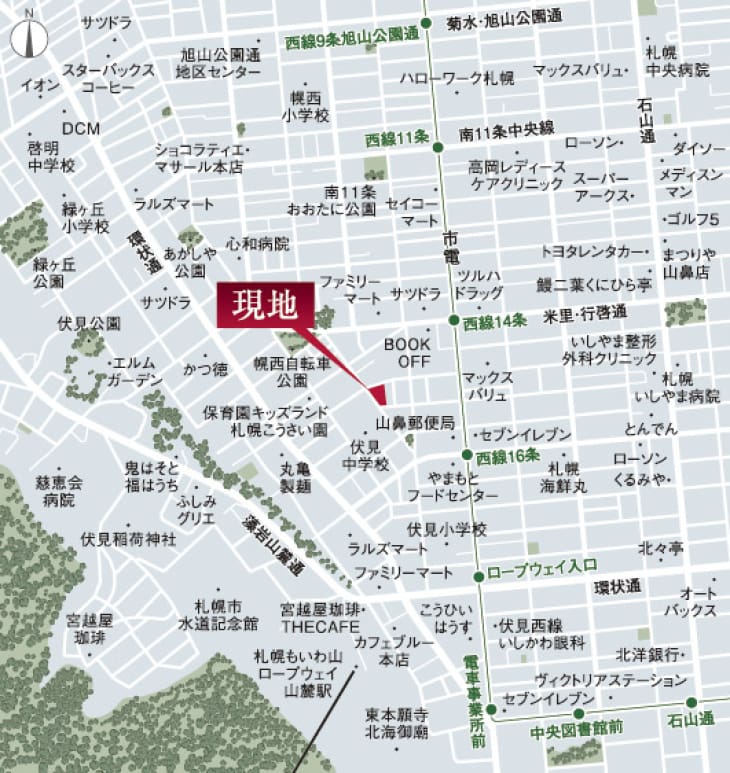 札幌市電「西線16条」駅 徒歩5分~7分(約400~500m)