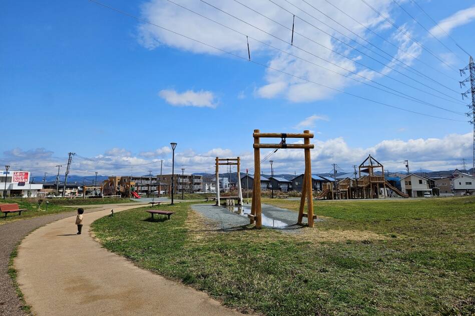 盛岡にちなんだ遊具やグラウンドがある大型公園。小さなお子様やワンちゃんとのお散歩にも最適です。