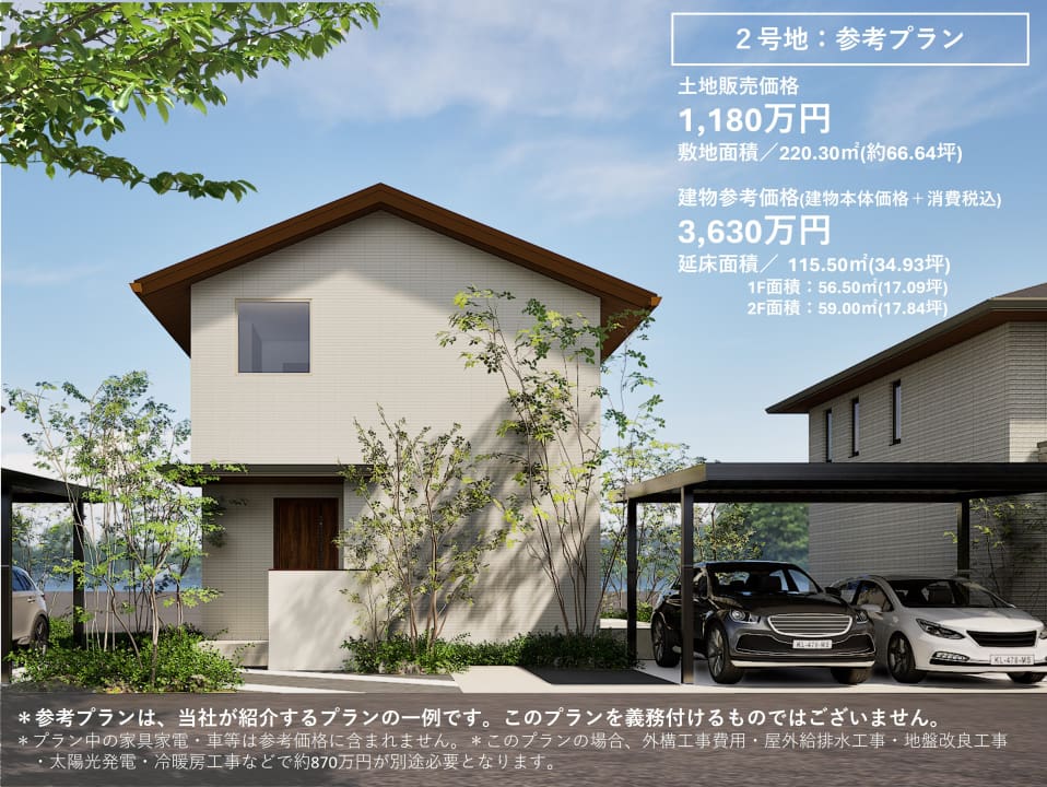 2号地/土地面積 220.30㎡(約66.64坪)土地価格 1180万円