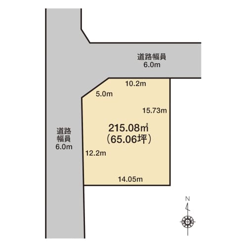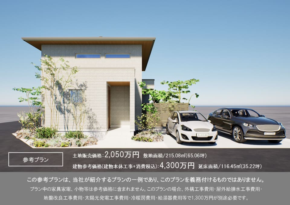 【参考プラン例】土地面積:215.08㎡(約65.06坪) 土地価格:2,050万円