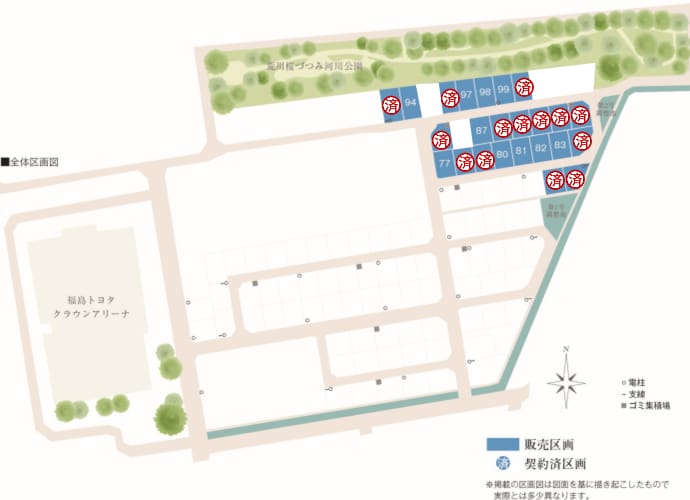 福島市仁井田にある積水ハウスの分譲地「コモンステージ仁井田」は、全103区画【うち、積水ハウス分29区画・総戸数29戸(うち建売6戸)】の分譲宅地です。「福島交通バス」の「国体記念体育館入口」停留所まで徒歩7分~9分の立地です。荒川桜づつみ河川公園までは徒歩5分圏内です。ヨークベニマル吉倉店や福島市立吉井田小学校までは徒歩25分圏内です。敷地環境、気候風土、家族構成、ライフスタイルにおこたえするため、「邸別自由設計」でお客様の夢をカタチにします。また、お引渡し後も計画的なメンテナンスを定期的にサポートし、住宅の資産価値や快適さを長く保つように配慮しています。 (2025年10月撮影)