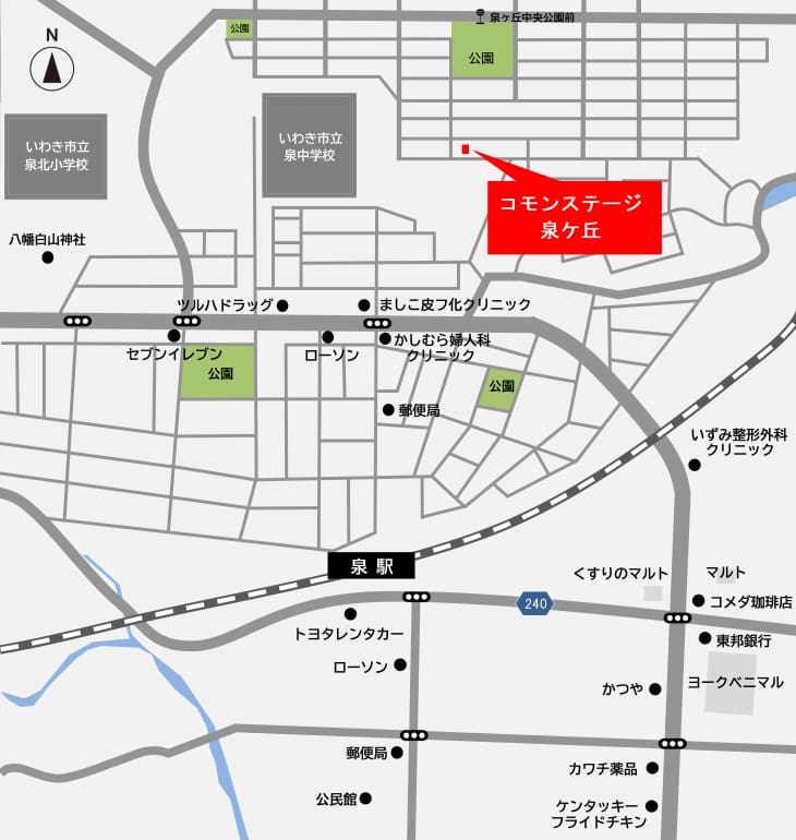 JR常磐線「泉駅」まで車で7分、約1.6km『コモンステージ泉ケ丘』