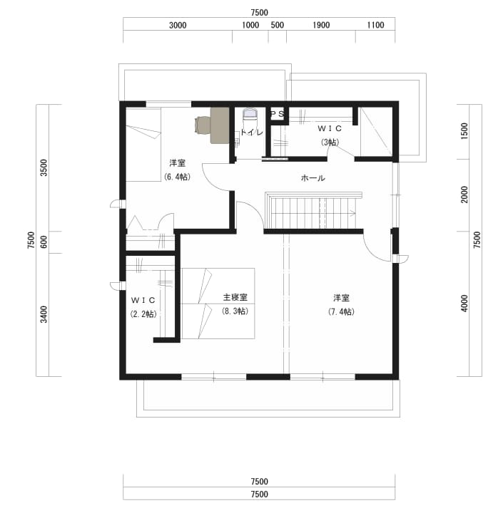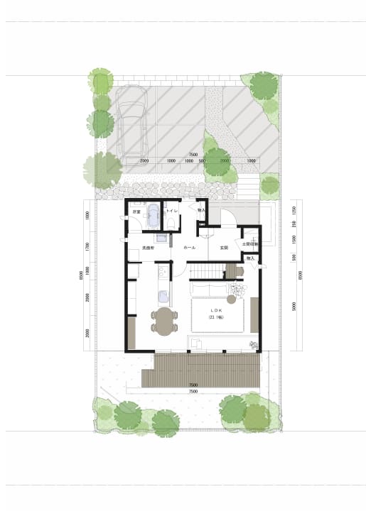 ※このプランの場合、外構工事費用・屋外給排水工事・地盤改良工事などで約500万円が別途必要となります。