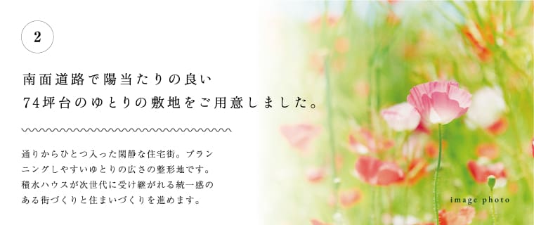 74坪台のゆとりの敷地に、ご家族の住まいの夢を描いてください。