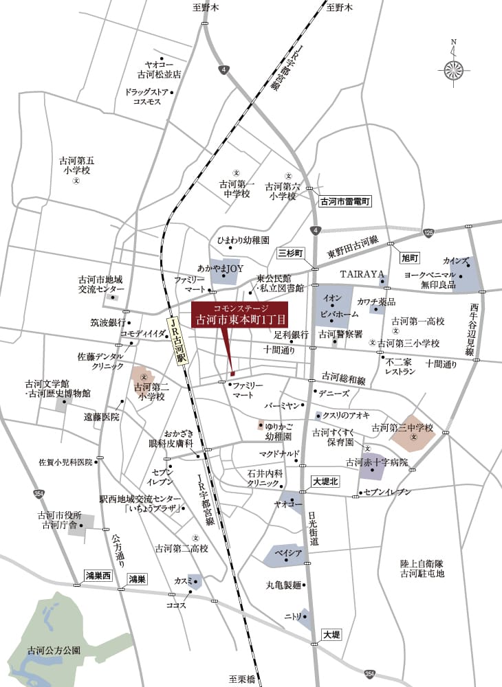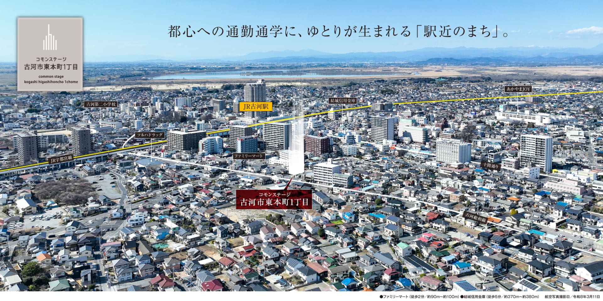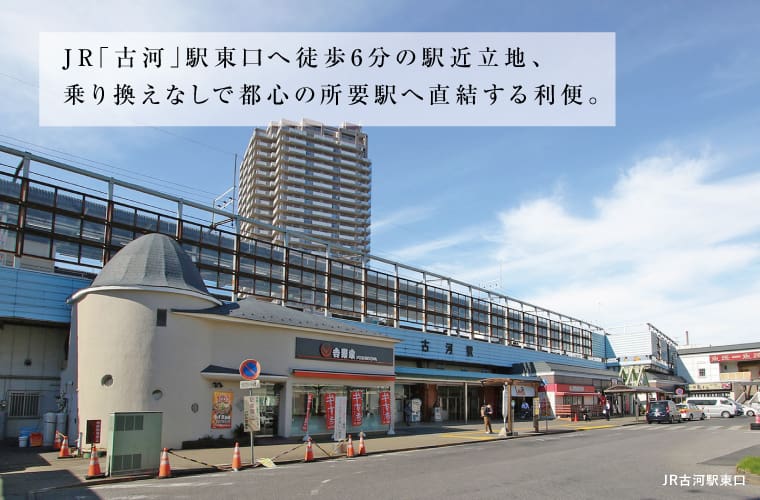 JR「古河」駅の徒歩圏の好立地、JR宇都宮線・上野東京ライン・湘南新宿ライン利用で都心の主要駅へダイレクトにアクセスできる利便性の高い街。