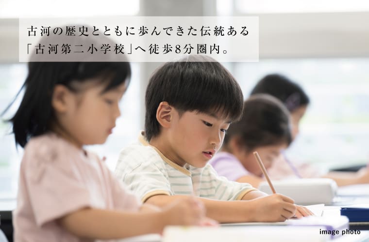 保育園・幼稚園、創立100有余年の歴史を積んできた「古河第二小学校」や、医療施設も近くに揃う子育て世代が 安心して暮らせる街。都心に直結した利便性を享受しながら、四季を愉しみ潤いのある街でアクティブな暮らしが 始まります。