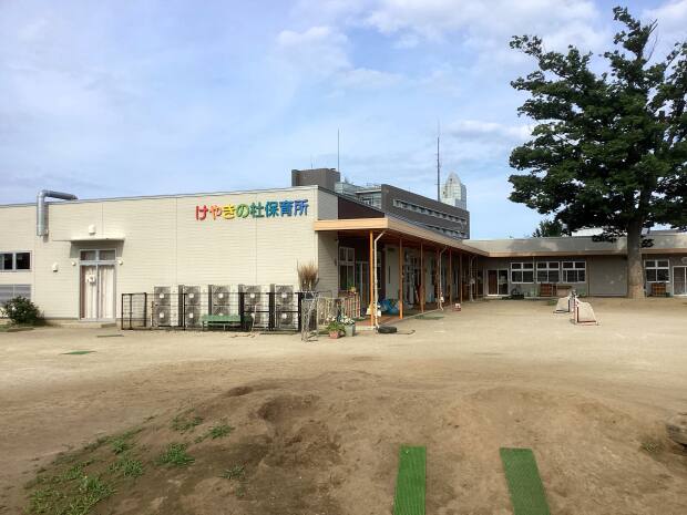 令和2年5月に開所した、定員100名の村立保育所。子どもたちがのびのび過ごせる広い所庭があります。子育て支援として、室内開放や所庭開放を行っています。