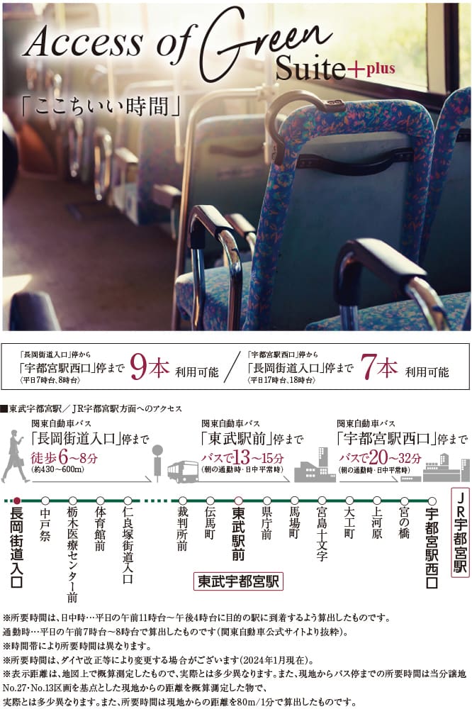 関東自動車バス「長岡街道入口」停まで徒歩6~8分(約430m~約600m)