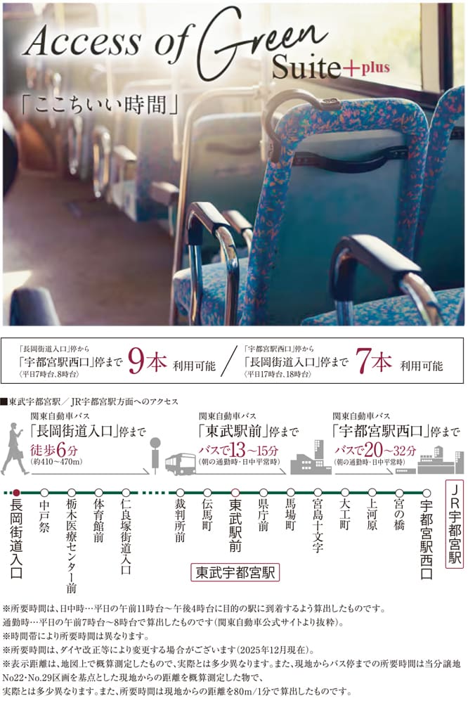 関東自動車バス「長岡街道入口」停まで徒歩6分(約410m~約470m)
