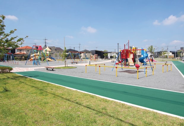 様々なコンビネーション遊具や健康遊具、さらに大きなグラウンドや遊歩道などがあり市民の健康づくりの場として親しまれています。