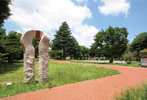 県立美術館の東側にあり大きなモニュメントが特徴的な公園。砂のグラウンドや様々な遊具があり市民の憩いの場として親しまれています。