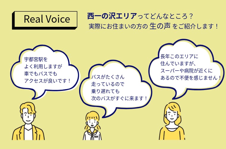 「関東自動車整備前」バス停からはJR「宇都宮」駅へ1日206本のバス便も魅力です。車での移動は、大谷街道や宇都宮環状道路へのアクセスが良く、中心街やショ ッピングモールへ快適にアクセスできます。環境に優しいLRTの駅西側延伸の計画があり、益々便利になります。