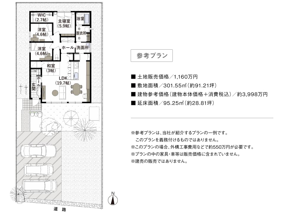 ※このプランの場合、外構工事費用などで、約550万円が必要です。