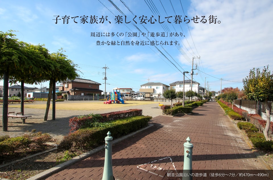 近くに公園が点在しお子様が安心して遊べる環境。夜9時30分まで営業のスーパーやドラッグストア、総合病院も近くに揃う暮らしやすい街です。