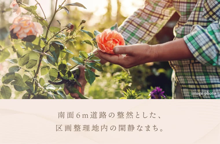 整然とした街並みがつづく区画整理地内の南面道路に面した住宅地。多世代の暮らしを支える利便施設が集積する街での暮らし始めませんか。