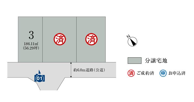 ![]() 整然とした区画整理地内の閑静なまちで、通りからひとつ入った全区画が南面道路で陽当たりの良い明るい整形地。 |
