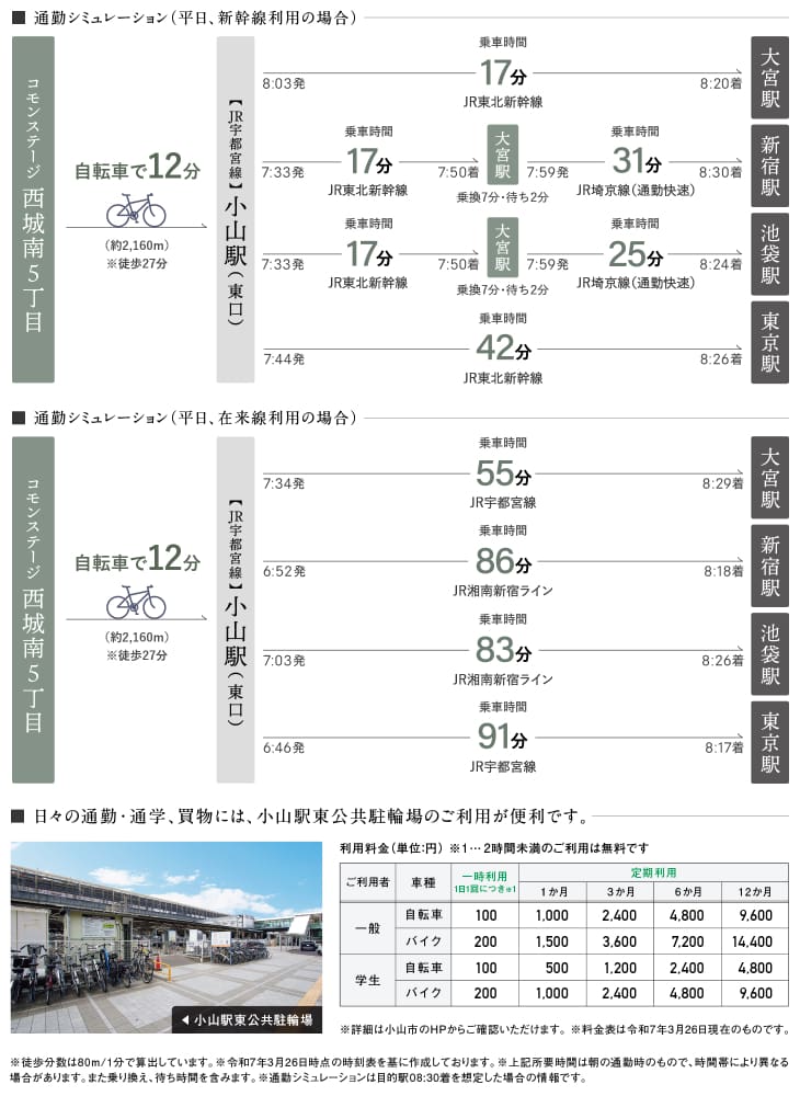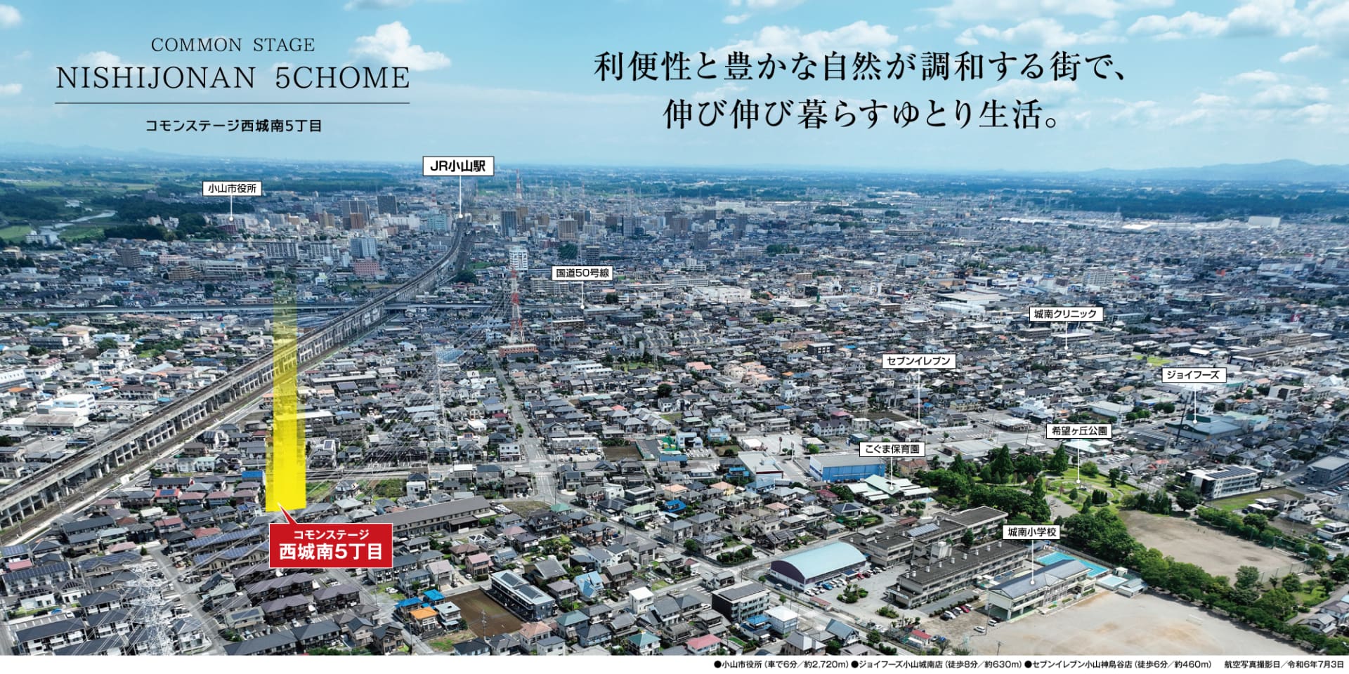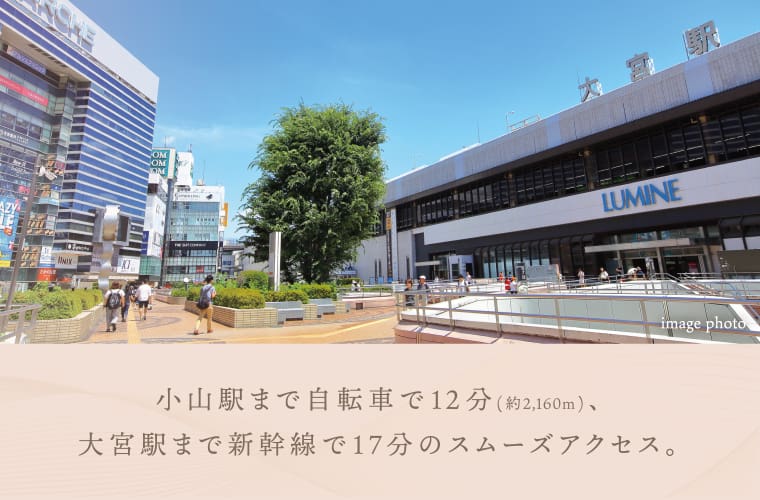 自転車利用で県内有数のターミナル駅「JR小山駅」へ12分。駅からは新幹線・始発の在来線で首都圏へ快適にアクセス。日々の通勤通学・買物に利用できるので、生活圏が広がり豊かで潤いのある生活を享受できます。