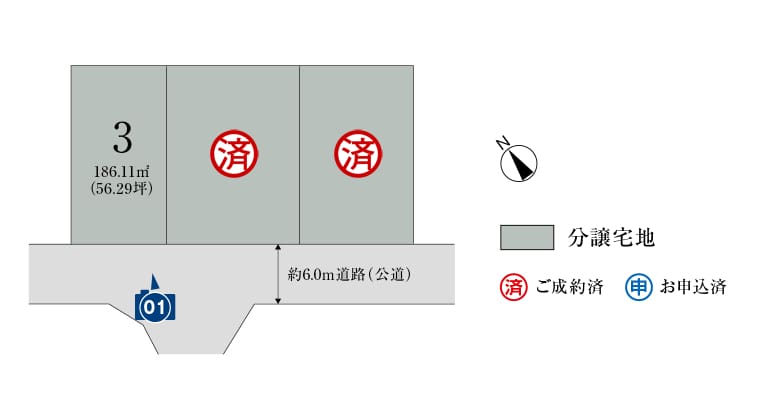 整然とした区画整理地内の閑静なまちで、通りからひとつ入った全区画が南面道路で陽当たりの良い明るい整形地。