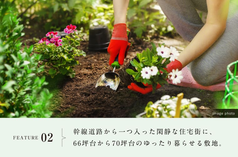 ![]() 整然とした街並みがつづく“土地区画整理地内”に誕生します。うち4区画は遊歩道に面した広がりを感じられる敷地。さらに通りから入った立地なので、穏やかな住環境を享受できます。積水ハウスは「まちなみガイドライン」で統一感のある、住み継がれる美しい街づくりを進めます。 |