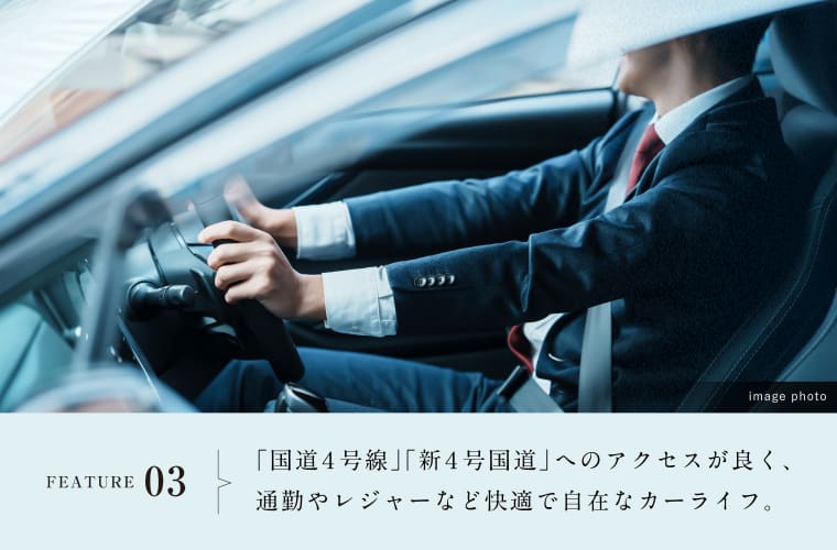 「国道4号線」や「新4号国道」へのアクセスが良く、車での移動がスムーズです。