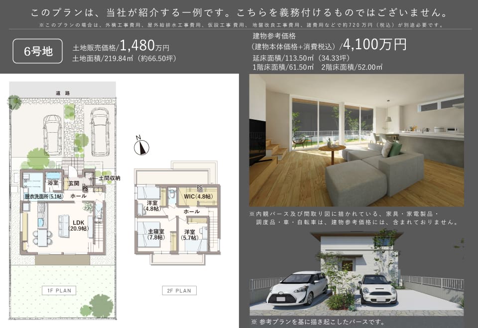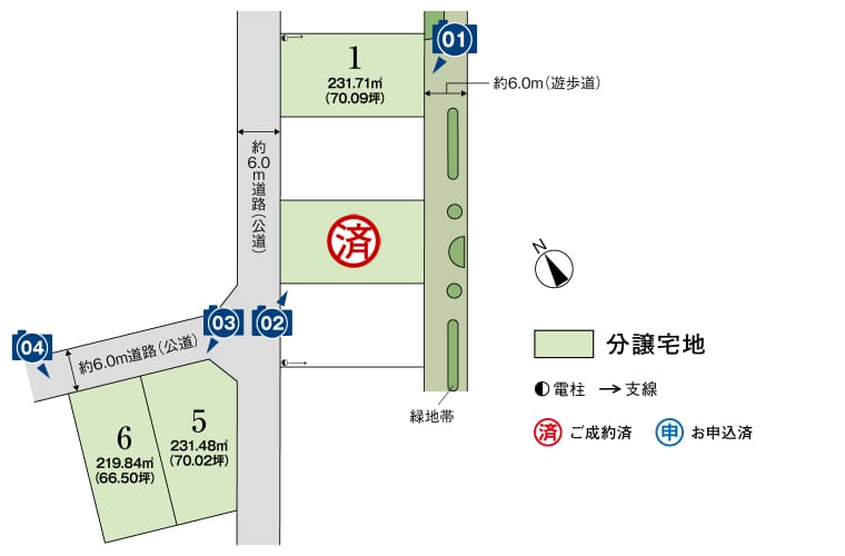 ・4区画は東側が遊歩道に面した広がりを感じる敷地。