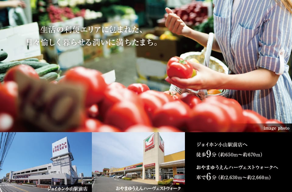 徒歩圏にある「小山」駅周辺エリアが生活圏。スーパーの「たいらや本郷店」、ドラッグストア「カワチ薬品小山駅東通り店」「セブンイレブン小山城東店(徒歩5分〜6分/約400m〜約420m)も近くて便利です。小山西口駅前は官民連携で複合拠点エリアを目指した再開発を推進しています。益々、活気と賑わいのある街へ進化していきます。