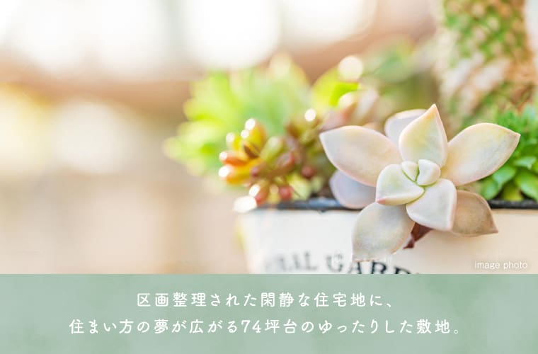 全区画74坪超えのゆとりの敷地だから、「平屋の住まい」もおすすめです。