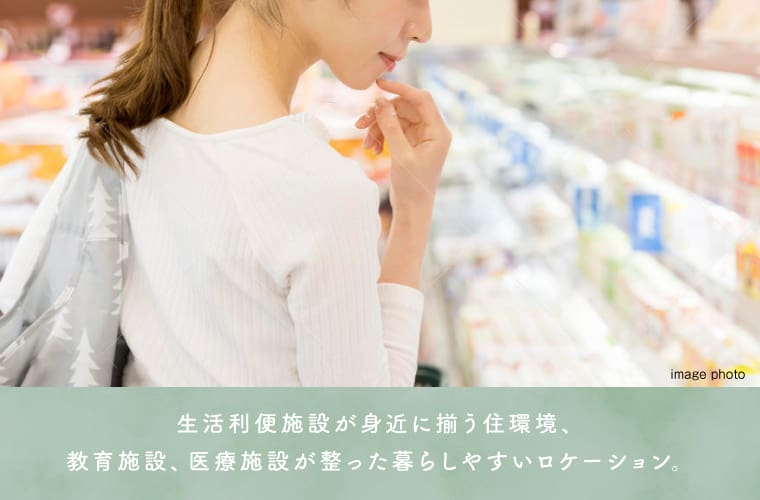 ![]() 暮らしを彩る充実の生活利便施設が徒歩圏内に揃います。保育園やクリニック、スーパーやドラッグストアなど充実の生活利便施設が徒歩圏内に揃っているので、子育て世代が安心して生活できる街です。みどり豊かな自然にめぐまれた環境で、お子様の成長を見守りながら暮らしませんか。 |