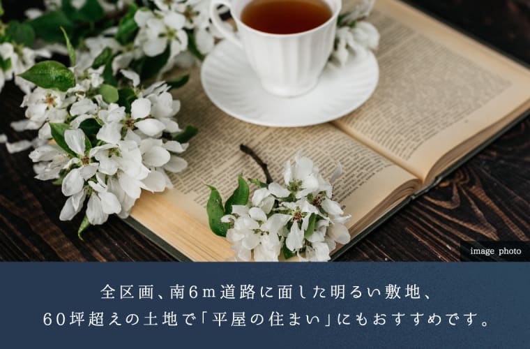 ![]() 南面道路の60坪超えのゆとりの敷地で、しかもプランニングしやすい整形地をご用意しました。今注目の、暮らしやすくバリアフリーの平屋住宅も可能です。積水ハウスは、住まう方の「感性」を住まいに編み込み、長く住み続けたくなる「愛着」のある家をお届けします。 |