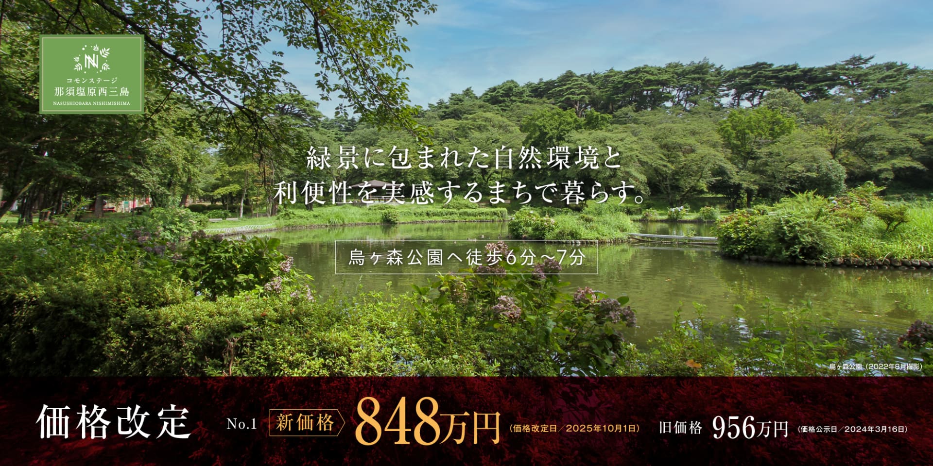 休日は「烏ヶ森公園」での散策がおすすめ。大きな池や遊具広場や芝生広場がありお子様が安心して遊べます。桜やツツジ・紫陽花など一年を通じて自然を愉しめ、丘の上からは那須野ヶ原を一望することができます。