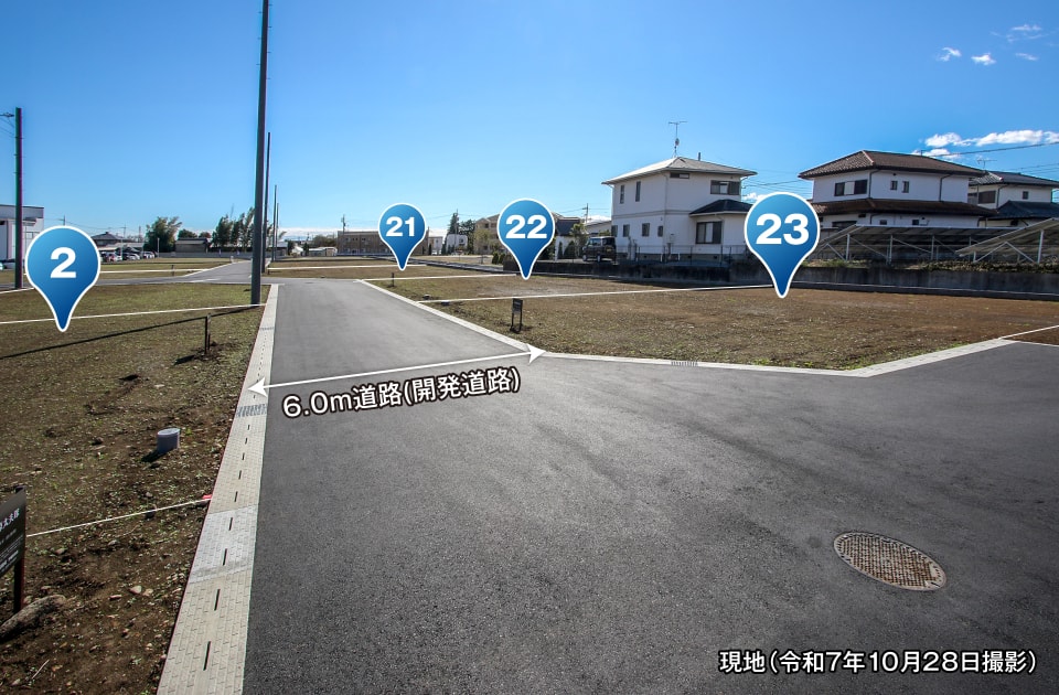 全25区画の大型分譲地。暮らし方に合わせて選べるゆとりの敷地をご用意しました。