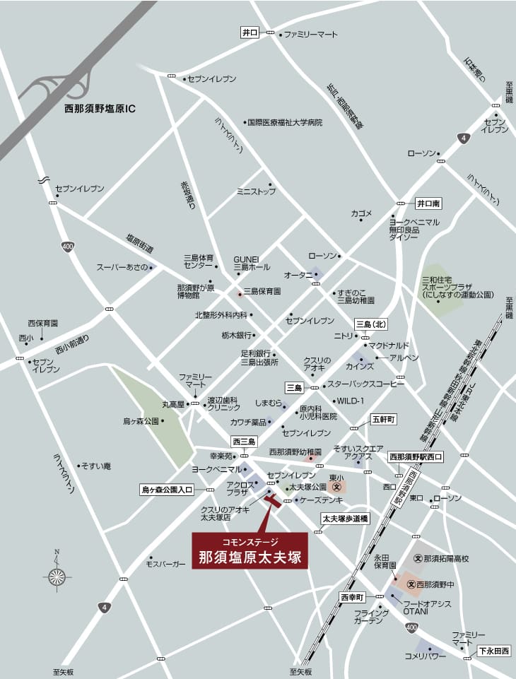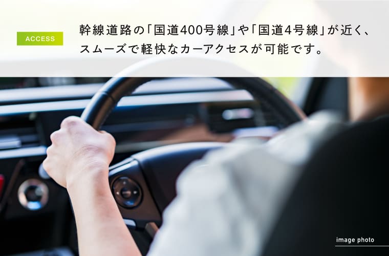 幹線道路の「国道400号線」や「国道4号線」が近く、車での移動もスムーズで快適です。
