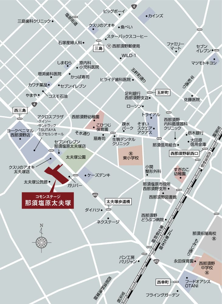 ![]() ショッピングモールの「アクロズプラザ西那須野」やスーパー「ヨークベニマル西那須野店」、コンビニ「セブンイレブン那須塩原太夫塚店(徒歩3分〜5分/約220m〜約330m)」、ドラッグストア「クスリのアオキ太夫塚店」などが徒歩圏にあるまち。利便性が高く毎日のお買い物も便利です。近くに24時間営業のスーパー「トライアルマート西那須野店」もあるので遅い時間でも安心です。充実の生活利便施設が整った街で落ち着いた日々を送れます。 |