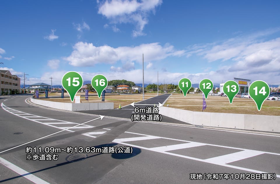 ・分譲地内は安全を考慮した6mの開発道路。