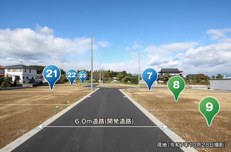 全25区画の大型分譲地。暮らし方に合わせて選べるゆとりの敷地をご用意しました。