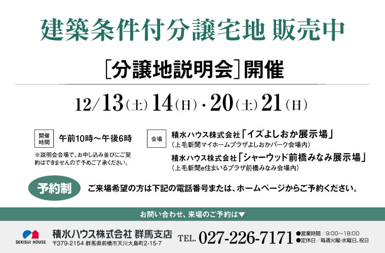 積水ハウス株式会社 群馬支店定休日:火曜日、水曜日及び祝日 営業時間:9:00~18:00