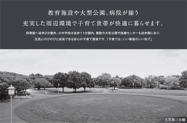 メガステーション「大宮」駅周辺が生活圏。普段使いできる多彩な大型商業施設や生活利便施が集積し、都市機能と自然が共鳴する愉しく豊かな暮らし。