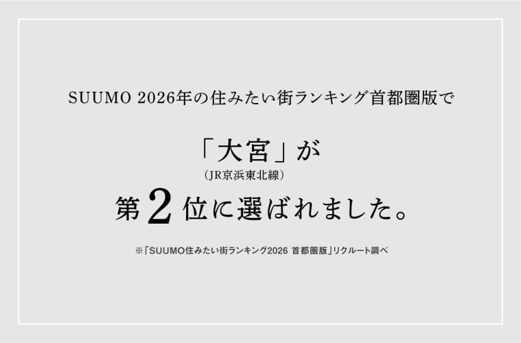 最寄りの「大宮」駅は、在来線10路線と新幹線6路線が発着するビッグターミナル。交通の要衝で都心や全国の各都市へスピードアクセスできます。