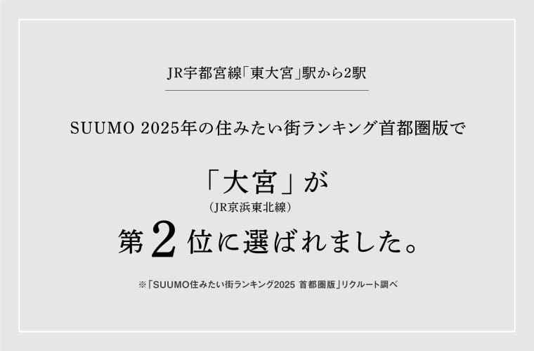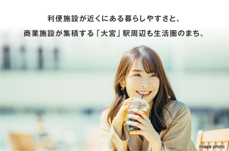 ![]() ビッグタウン「大宮」の近郊エリアで生活施設が徒歩圏にある暮らしやすいまち。「大宮」駅周辺も生活圏、楽しいお店が集まる「駅ナカ」をはじめ、大型商業施設や専門店・グルメ、文化施設もある魅力的なまちです。 |