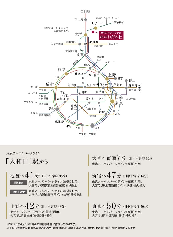 「大宮」駅からは京浜東北・根岸線、埼京線、湘南新宿ライン、上野東京ラインで都心のメガターミナル駅へ直結。