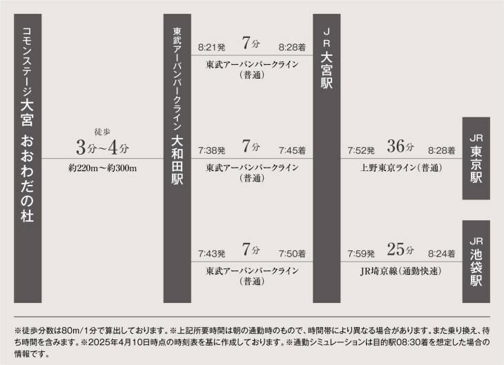 東武アーバンパークライン「大和田」駅へ徒歩3分〜4分の立地。3駅7分でビッグターミナル「大宮」駅へ。「大宮」駅からは新宿・渋谷方面・東京・品川方面へダイレクトアクセスできるので通勤や通学がスムーズです。