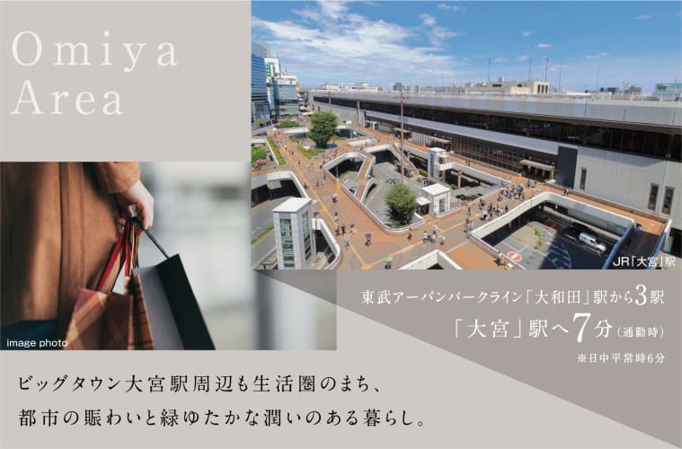 生活利便と豊かな緑につつまれた住環境が魅力の街、ビッグタウン大宮近郊エリアで暮らす利便生活。都心へのアクセスもスムーズです。