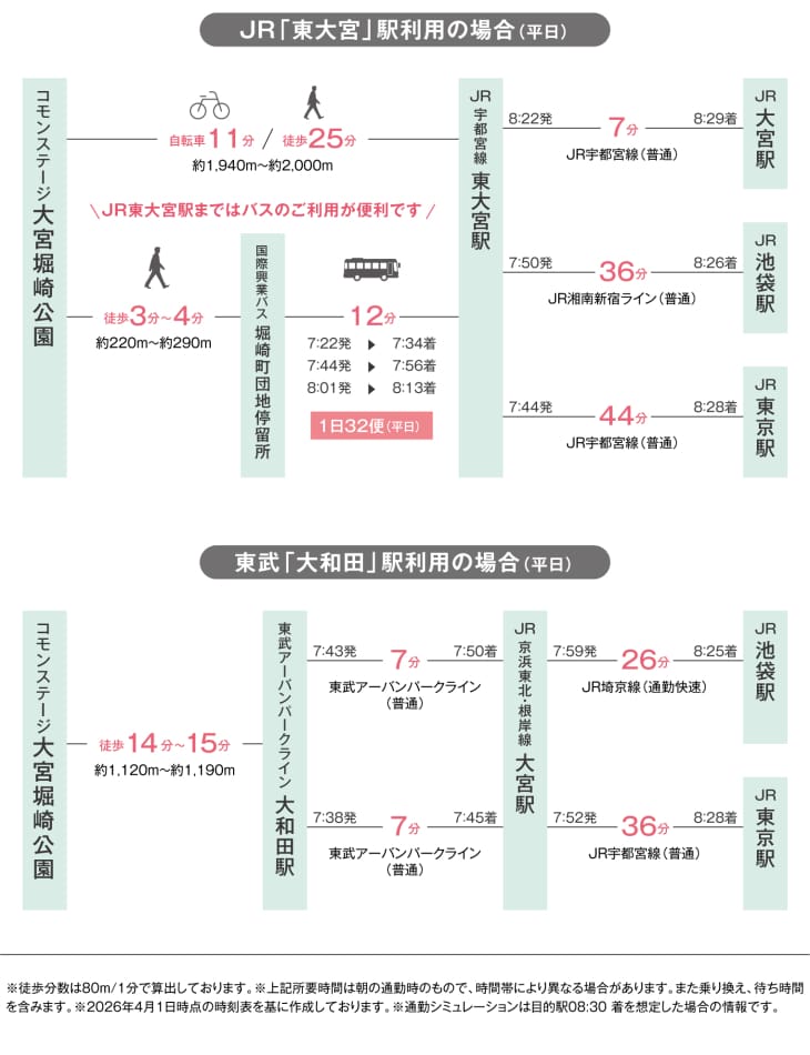 JR「東大宮」駅と東武「大和田」駅、「七里」駅の3駅利用可能です。
